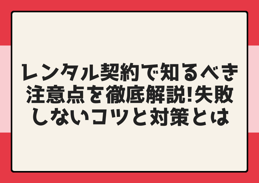 この記事では、初心者でもわかりやすく、レンタルサービスの基本的な流れを解説します。具体的なステップや注意点をしっかり押さえて、賢くレンタルライフをスタートさせましょう!