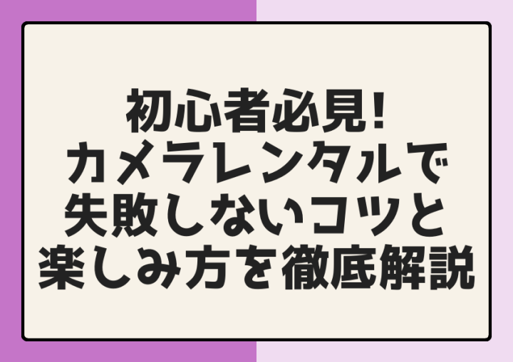 初心者必見!カメラレンタルで失敗しないコツと楽しみ方を徹底解説