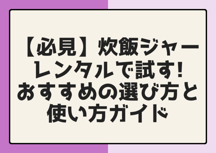 【必見】炊飯ジャーレンタルで試す!おすすめの選び方と使い方ガイド